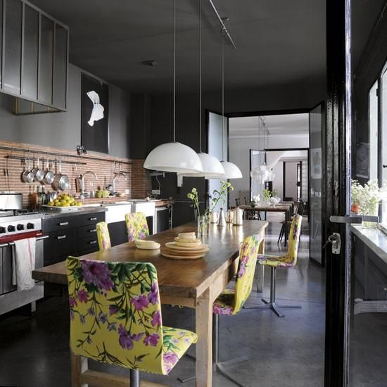 Iluminación Ambiental: si contamos con una zona de office en la cocina donde comemos es conveniente que ésta zona tenga un punto de luz propia, una buena opción sería una lámpara de techo colgante que se coloque a unos 70-80 cm de la mesa. Hay que optar por materiales que sean de fácil limpieza.